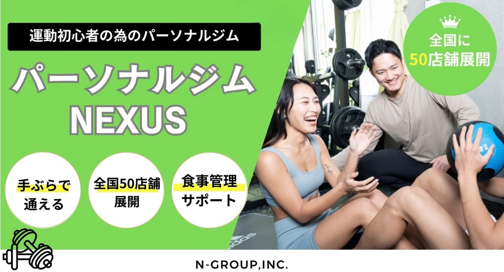 NEXUSはリーズナブルに質の高いトレーニングが受けられるパーソナルジム。脂肪の燃えやすい身体と習慣をつくるためにトレーニングの質と通いやすさに徹底的にこだわっています。運動初心者の継続率は95%とユーザーから大人気です。ウェアの貸出やドリンクも無料で提供されるので完全手ぶらでOK。トレーニング時間も30分or60分から選ぶことができ忙しい人にも◎。1回60分、8回のプランが56,000円(税込)で食事アドバイスつき。まずは無料の体験トレーニングへどうぞ