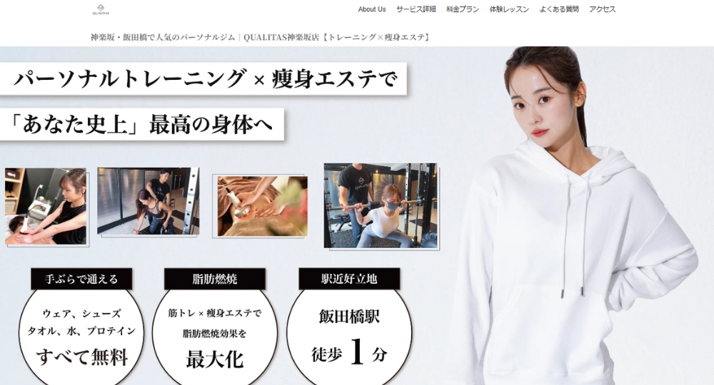 QUALITAS神楽坂店は、神楽坂にあるパーソナルジム。1回90分で、8回分のレッスンは193,600円(税込)。はじめての方は8,800円(税込)でパーソナルトレーニングの体験を受けることができます
