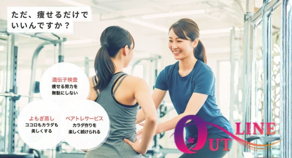 アウトラインは、業界初の「生涯無料アフターサポート」がついた女性専用パーソナルジム。よもぎ蒸しや遺伝子検査、高級アミノ酸など、無料サービスが充実しているのが特徴です。1回60分、16回コースが184,800円(税込)。完全個室のプライベート空間でベビーサークル完備なのでお子様連れでも安心です。まずはぜひ無料カウンセリングを受けてみてくださいね