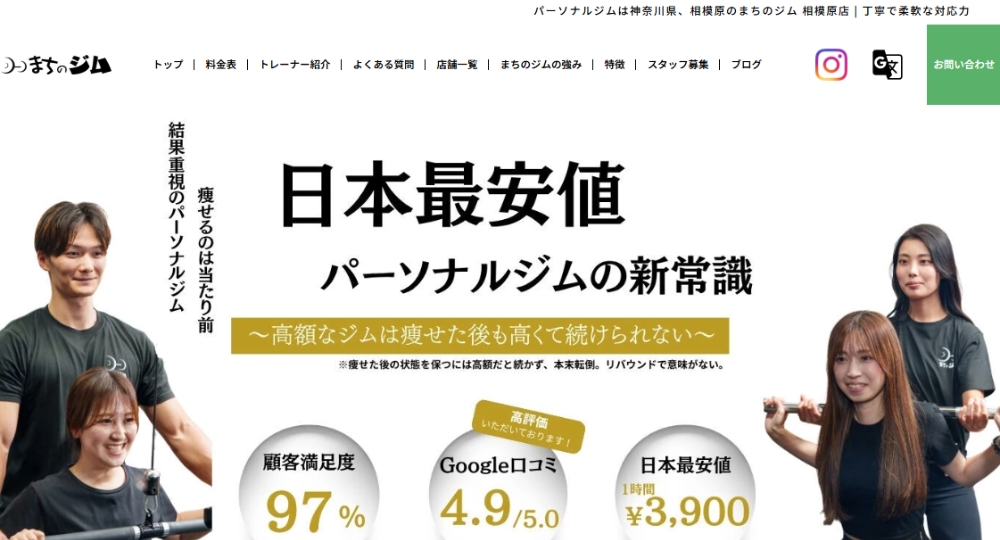 まちのジム相模原店は、相模原にあるパーソナルジム。1回60分で、8回分のレッスンが34,000円(税込)。はじめての方は無料でパーソナルトレーニングの体験を受けることができます